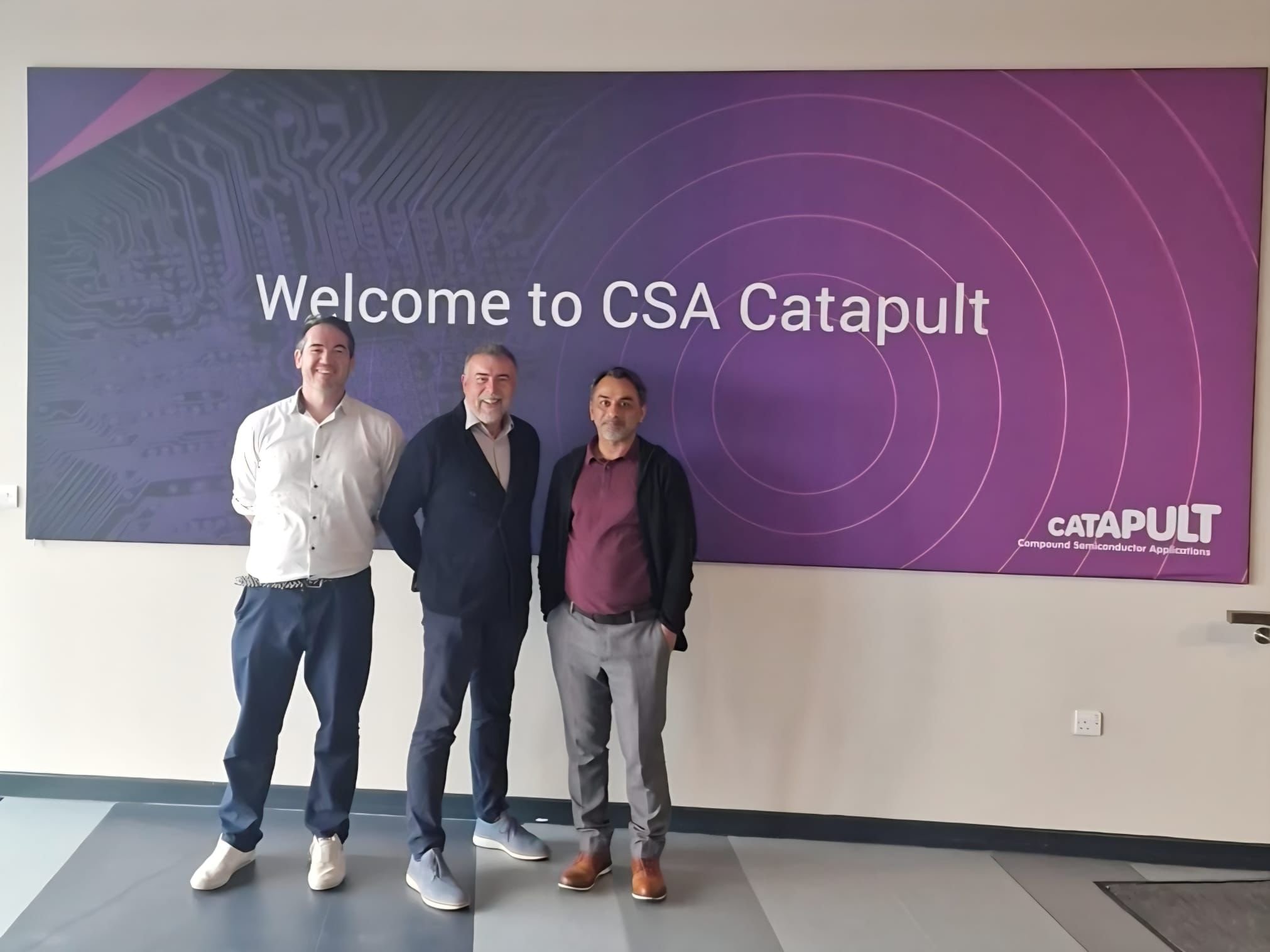 Left to right, Tobias Marchant (Space South Central), Carl McMahon (Circuits Intergrated) and Dr Kauser Chaudhry (Compound Semiconductors Applications Catapult)