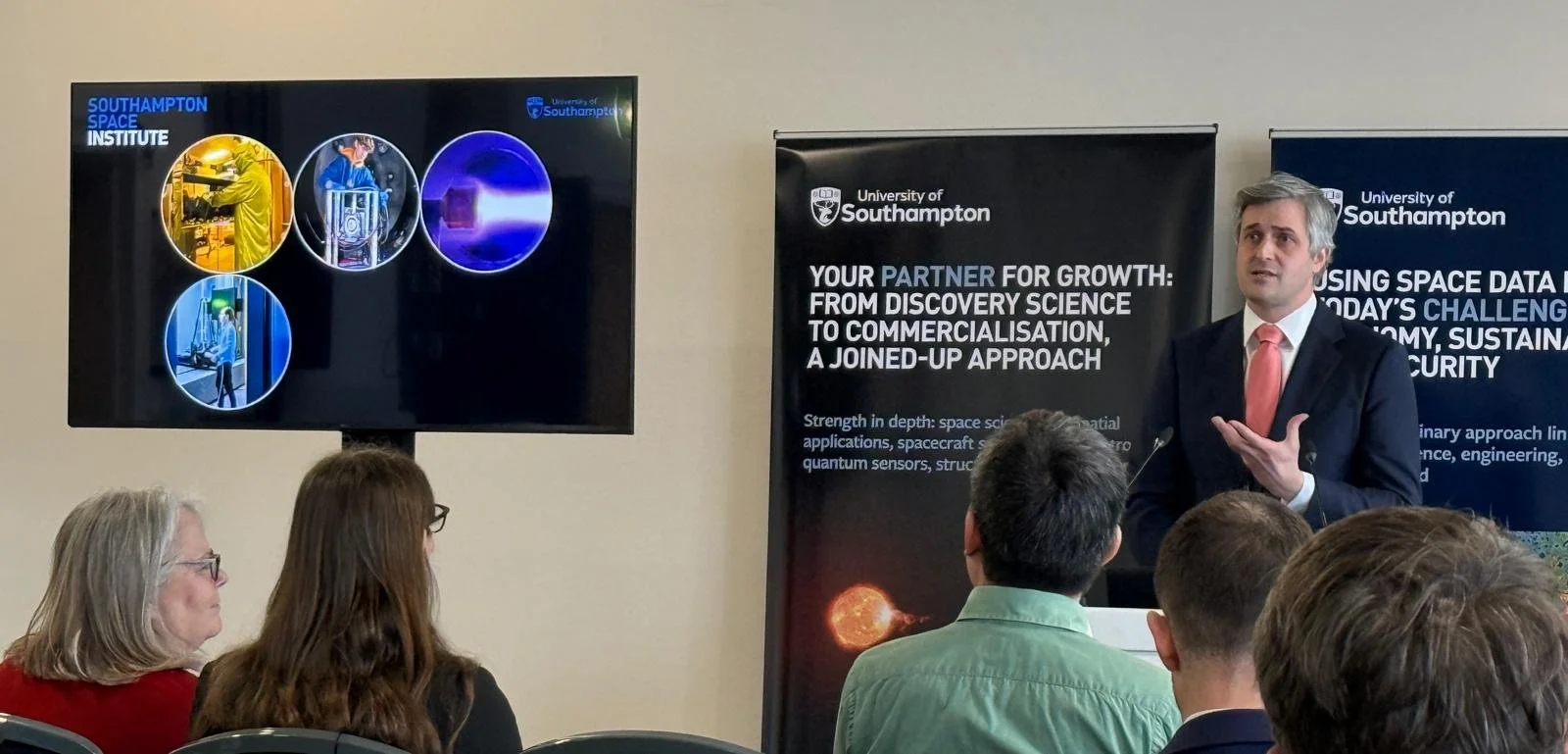Speakers included Southampton Space Institute’s Director, Professor Matt Middleton, followed by speakers including, Chair of the UK Space Agency, Lord Willetts, and MP for Southampton Itchen, Darren Paffey.